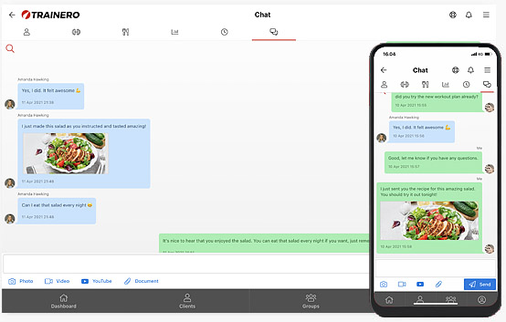 Suhtle oma klientidega, rühma liikmetega või oma kolleegidega reaalajas. Muid äppe pole enam vaja – kõik on Trainero.com-is olemas!