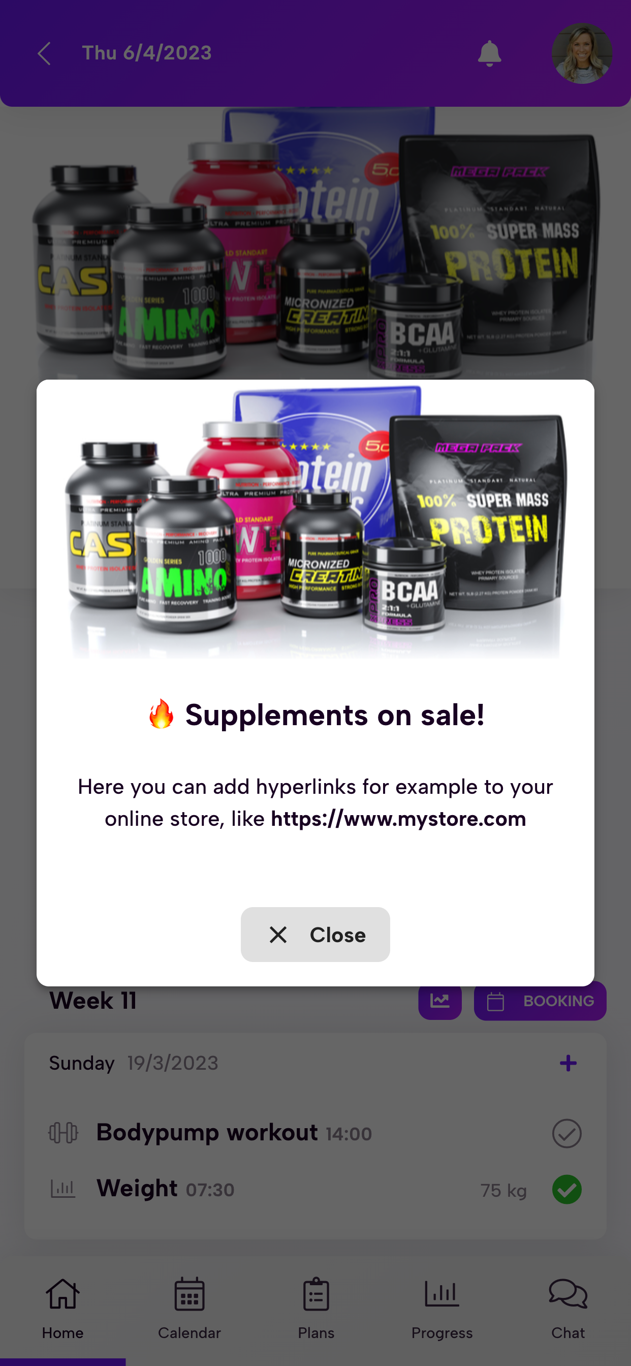 Creează reclame specifice pentru clienți sau grupuri care sunt afișate pe pagina principală a aplicației clientului, unde vor fi observate. De exemplu, poți promova servicii suplimentare, produse din magazinul tău online sau pur și simplu anunța aspecte importante, cum ar fi noile ore de deschidere ale sălii tale de sport.