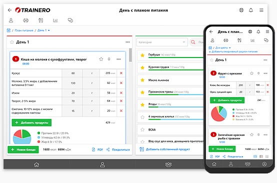 Постройте подробный план питания, используя более 4000 ингридиентов. Добавляйте блюда в избранное и сохраняйте их для будущего использования.