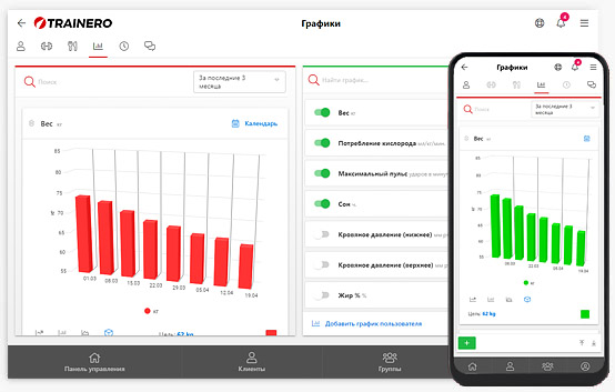Тренируйте отдельных клиентов или большие группы без проблем.